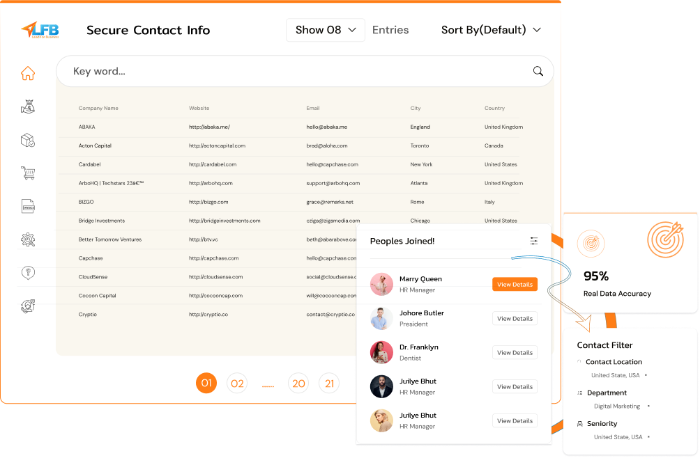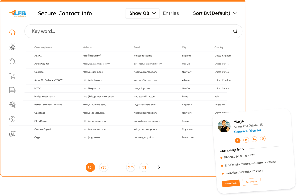 With more than 10 years of experience in startup lead generation, LFBBD has helped companies, investors, and agencies worldwide grow with reliable data.
